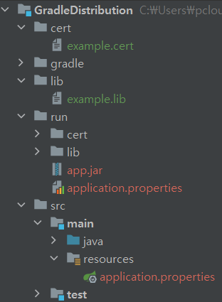 이후 gradle build 명령어를 사용 시 run 폴더에 배포에 필요한 파일이 구성되는 것을 확인할 수 있습니다.