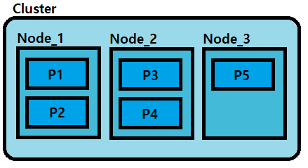 그림은 3개의 노드로 구성된 Cluster에서 5개의 Shard를 가진 Index를 표현한 것입니다.