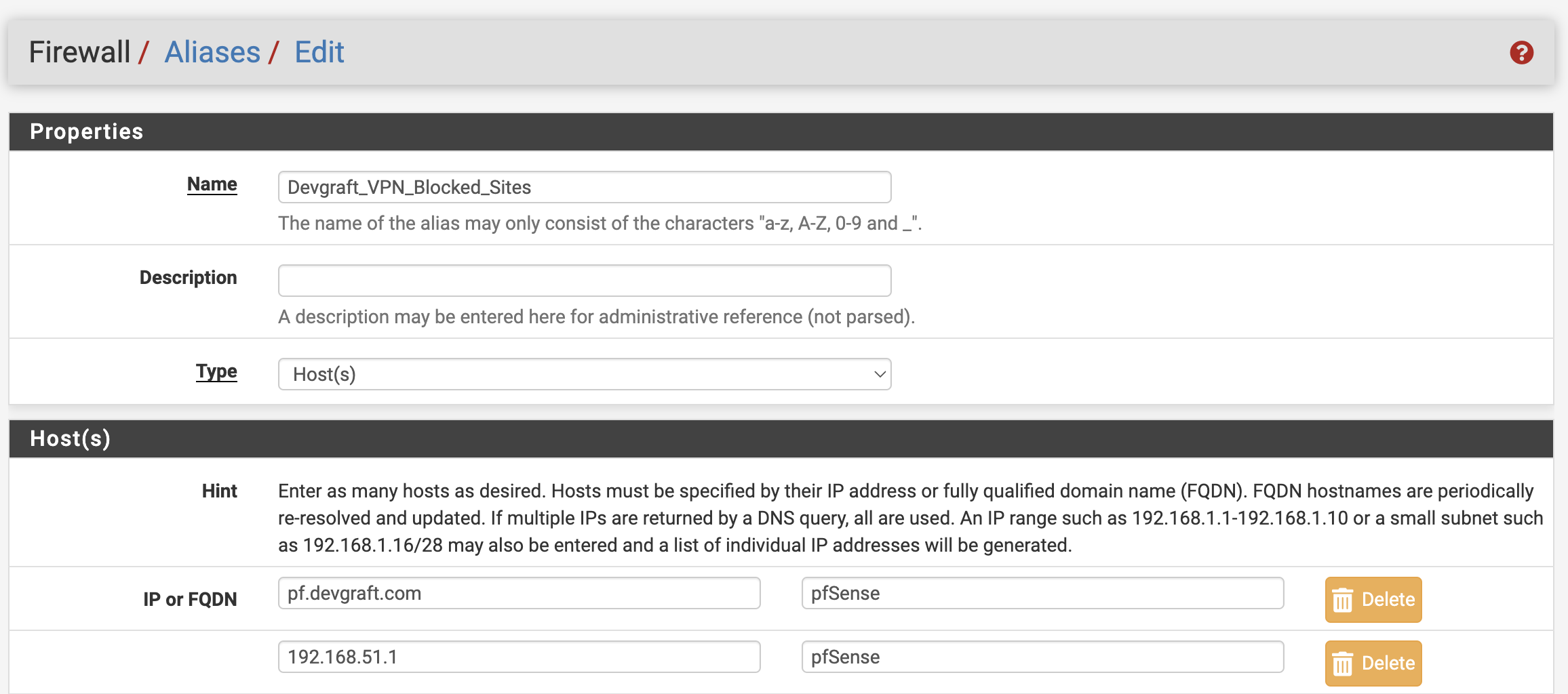 pfSense의 주소는 192.168.51.1 이며 pf.devgraft.com 이름을 갖고 있습니다.